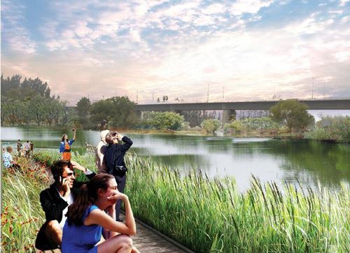以荷花為主題,堤岸打造木棧道,河岸搭配蘆葦等植物,充分發(fā)揮綠地效益。