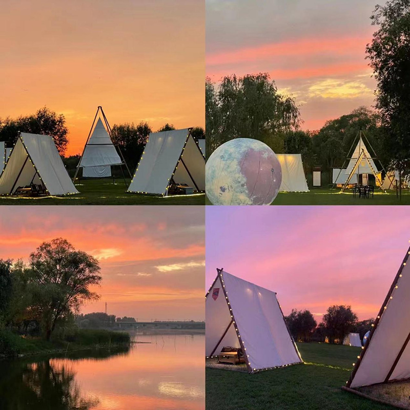 將現狀高爾夫練習場草坪區(qū)域改造成帳篷營地,供游客進行露營、觀星、野餐、篝火晚會等活動,區(qū)塊劃分帳篷搭建位,規(guī)范游客合理安排帳篷位置。設置露營野餐的服務點,提供售賣零食飲料和帳篷出租的服務。